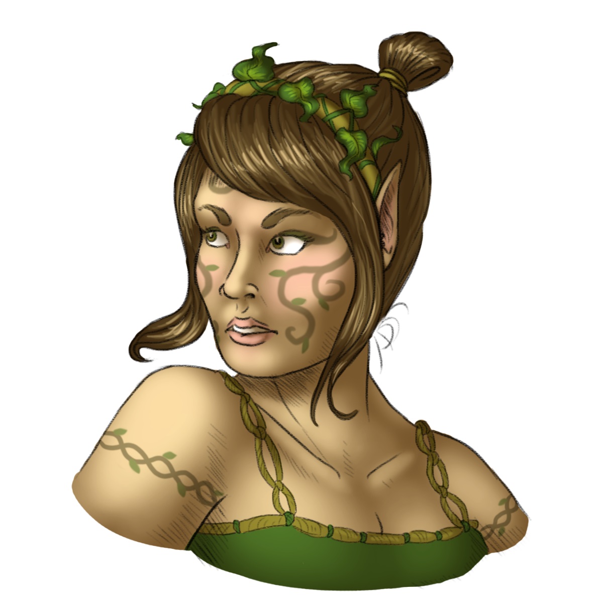 | While Elves are the intellectuals, the Kalindrin are every bit the tribal warrior brethren to them. Decorated in tattoos of green and brown to reflect their warrior prowess,