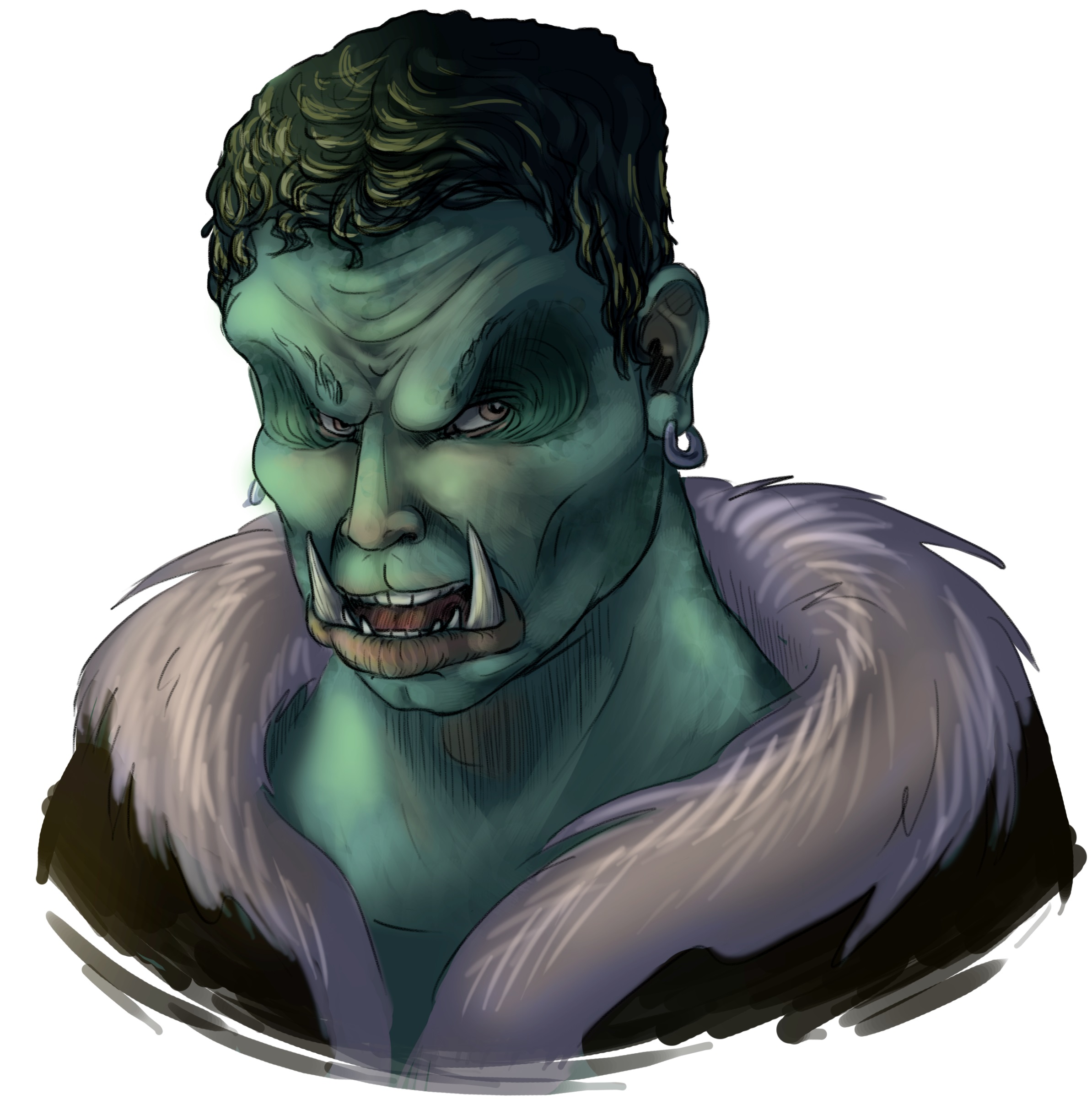 | Like most of the inhabitants on Halven, Gru'ken speech is very gutteral and usually difficult to understand given their large protruding tusks.